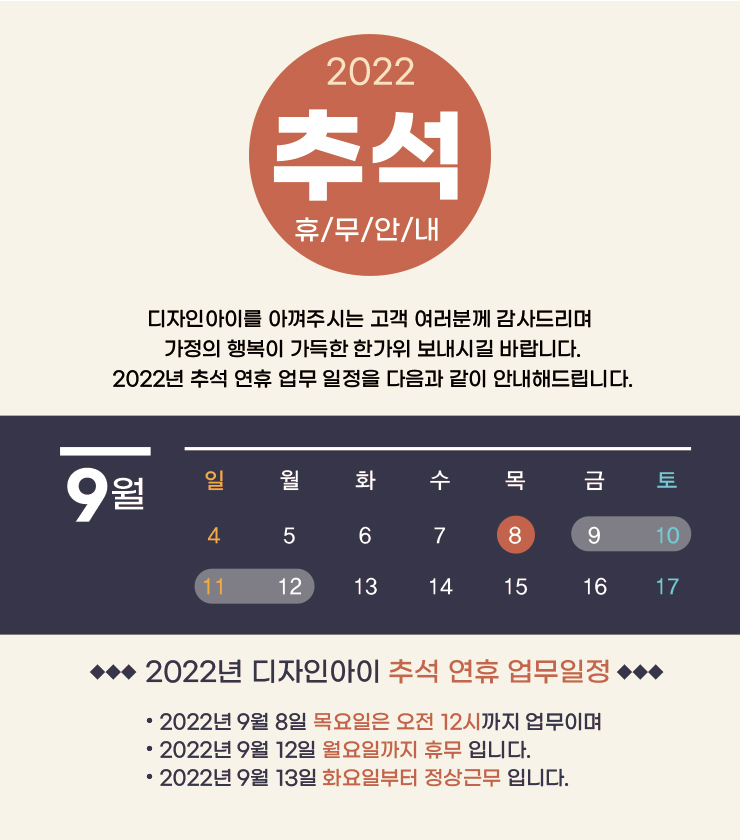 Á¦¸ñ 2022, µðÀÚÀξÆÀÌ Ãß¼®¿¬ÈÞ ÈÞ¹« ¾È³»