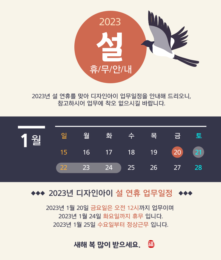 Á¦¸ñ 2023³â ¼³ ¿¬ÈÞ µðÀÚÀξÆÀÌ ¾÷¹«ÀÏÁ¤ ¾È³»