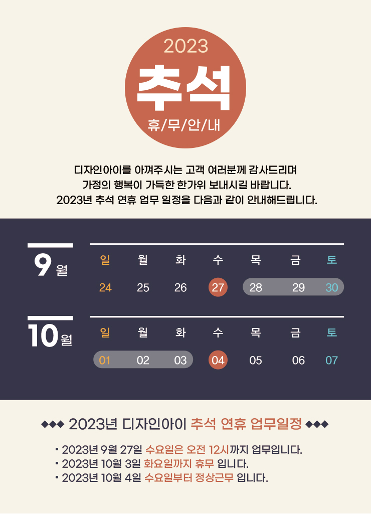 Á¦¸ñ 2023, µðÀÚÀξÆÀÌ Ãß¼®¿¬ÈÞ ÈÞ¹« ¾È³»